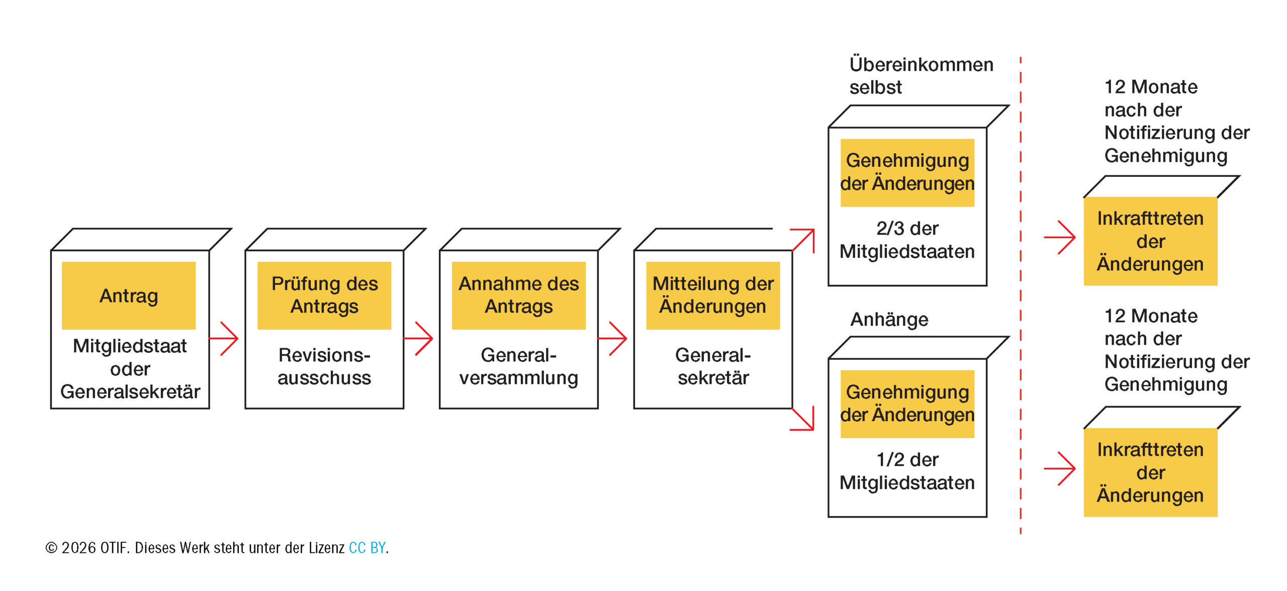 Es gibt zwei Verfahren zur Überarbeitung des COTIF gemäß den geteilten Zuständigkeiten (Artikel 33 COTIF).