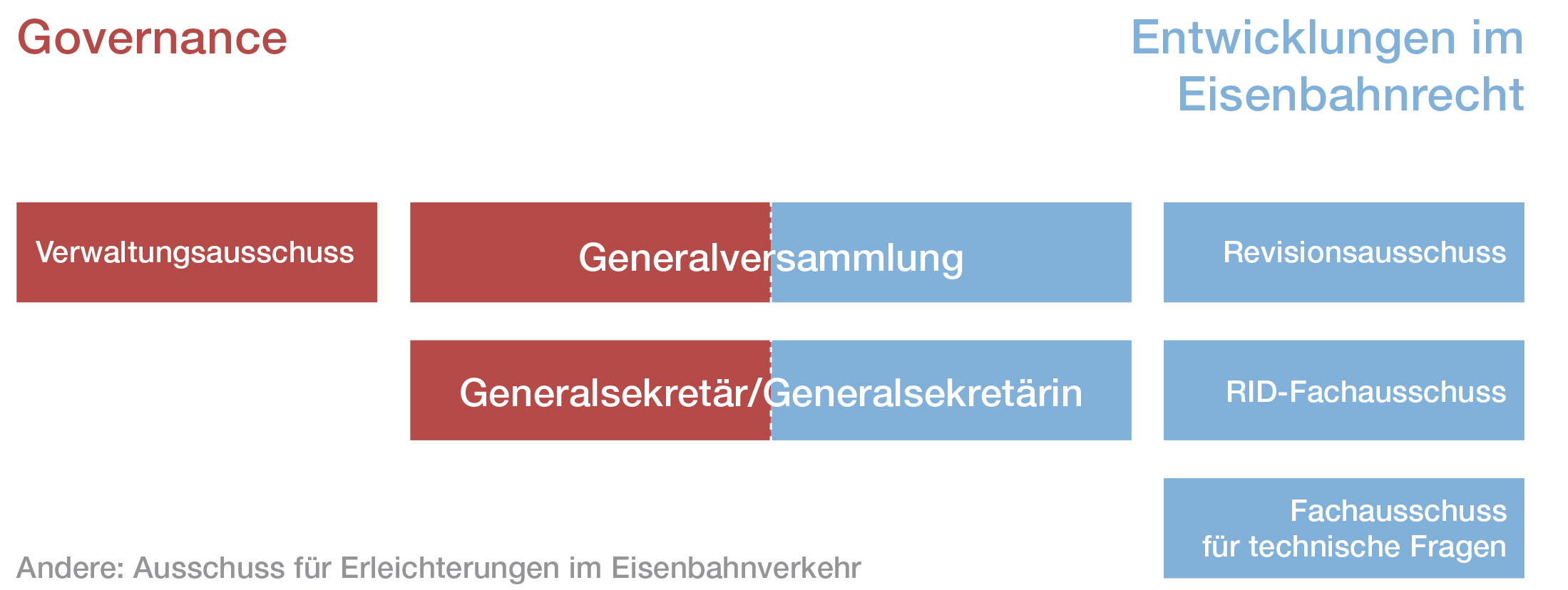 In den Ausschüssen wird internationales Eisenbahnrecht entwickelt. Sie können zur Unterstützung Arbeitsgruppen einsetzen.